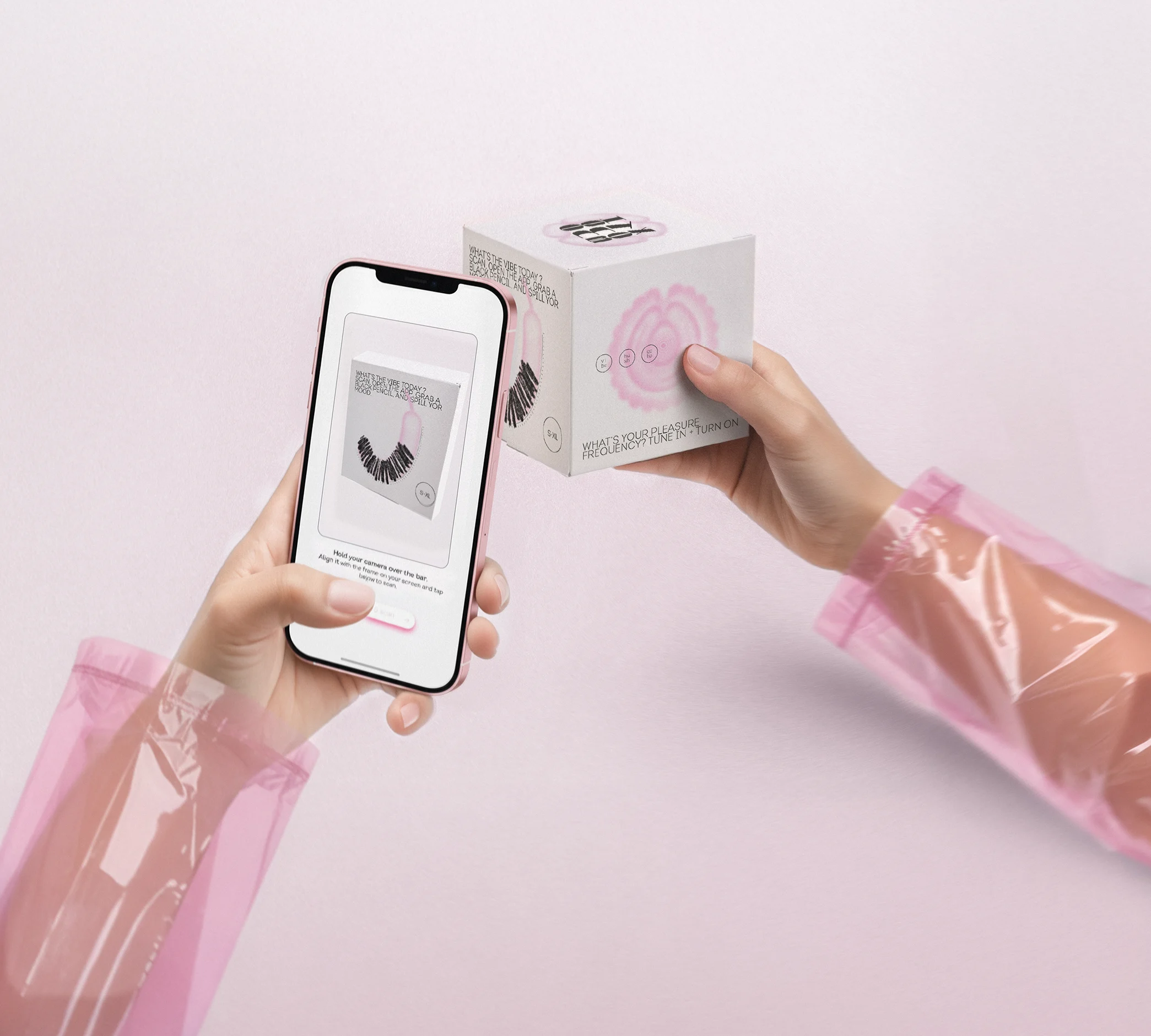 Interactive Packaging Design Challenging Intimacy Taboos Oh My Box! is a speculative packaging concept that challenges the taboos surrounding sex toys and intimacy in romantic relationships. Positioned at the intersection of sexual wellness and design, this project redefines packaging as a space for shared curiosity, expression, and playful connection. Through a multi-sensory approach—combining tactile elements, augmented reality, and audio interaction—the box invites users to co-create a personalised unboxing experience. The surface is intentionally minimal and unbranded, concealing an AR layer that activates with a smartphone scan. Hidden visuals and prompts emerge, responding in real-time to how the user touches, marks, or customises the box. Each box is different. By ticking boxes, scribbling answers, or scanning custom codes, the interaction becomes intimate, collaborative, and personal. An added audio component allows the mood to shift—between whispers, soundscapes, or pulses—according to the users’ choice. Oh My Box! proposes a future where packaging becomes a medium for dialogue—not just a wrapper, but a trigger for emotional and sensual engagement. In doing so, it reframes the narrative around pleasure products, removing shame and encouraging couples to explore together.